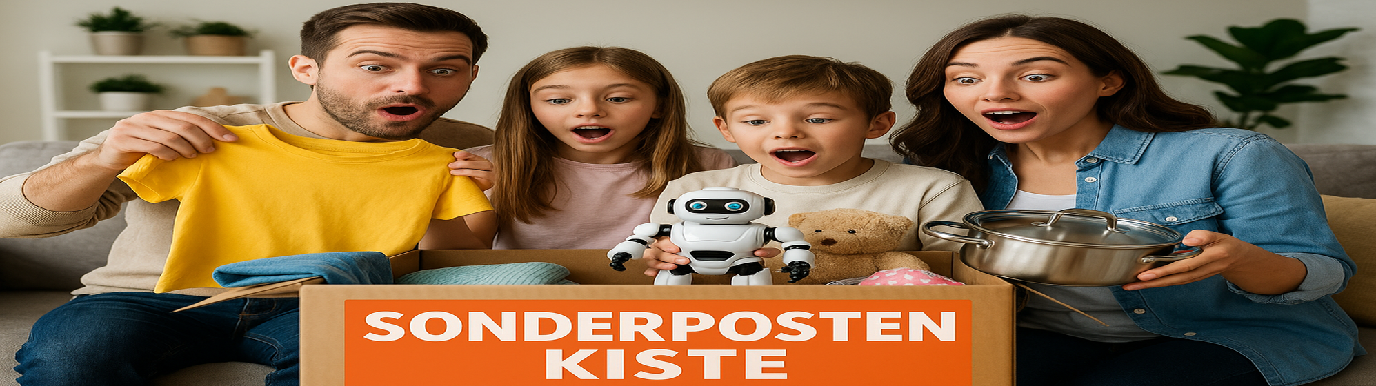 In unserer Sonderposten Kiste findest du Kleidung, Haushaltswaren, Spielzeug und vieles mehr – alles sortiert, geprüft & sofort versandbereit.